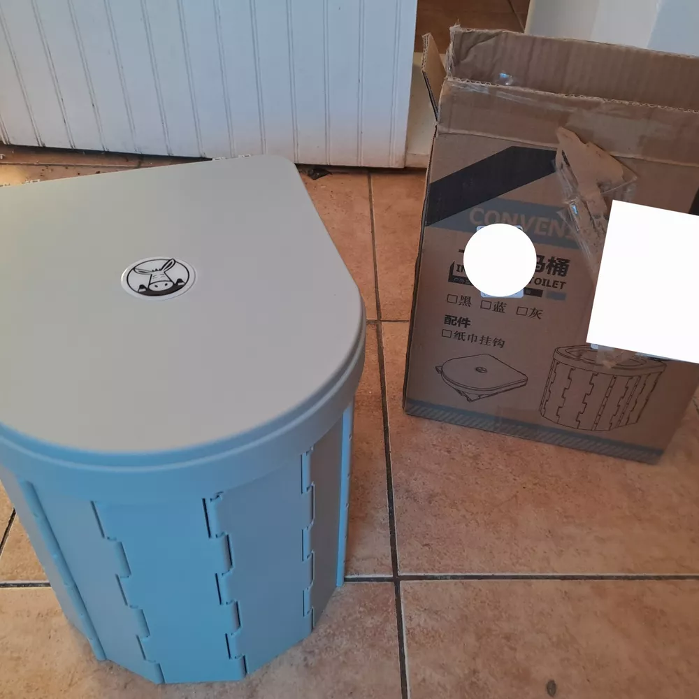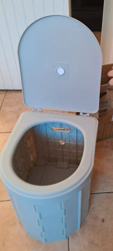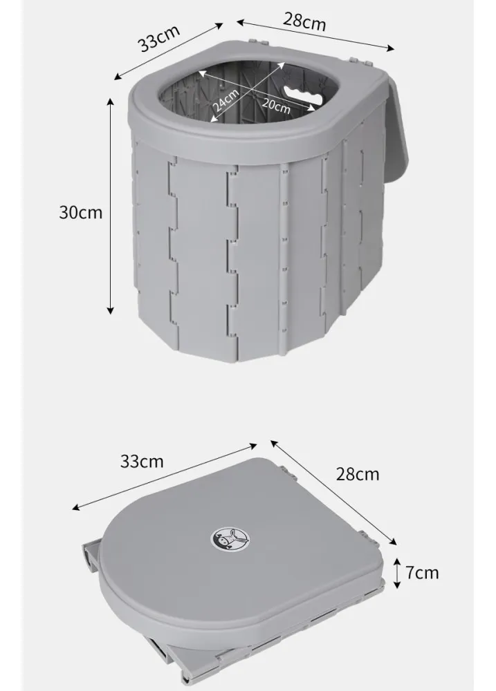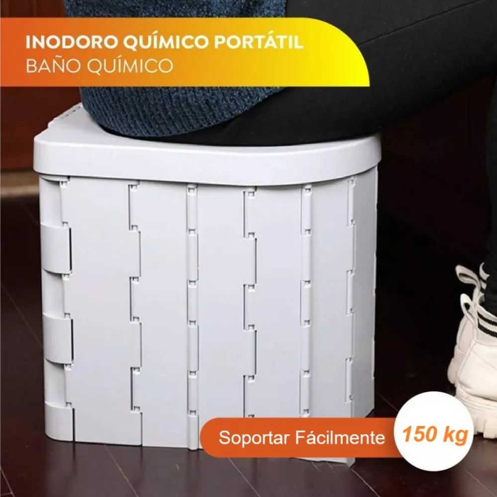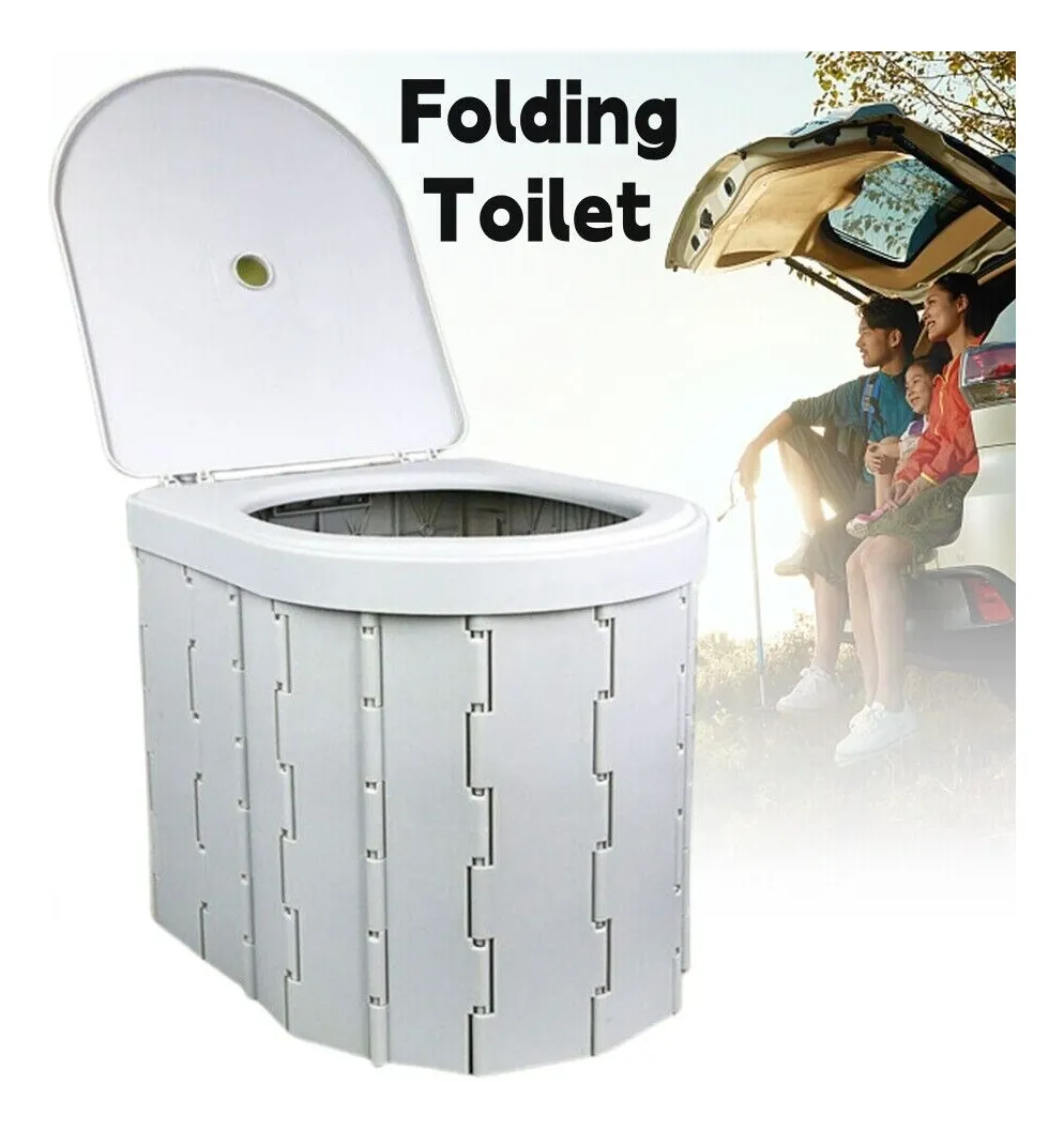 Inodoro portátil de plástico resistente, plegable, con bolsa de transporte y bolsas de basura. Ideal para camping y viajes.
